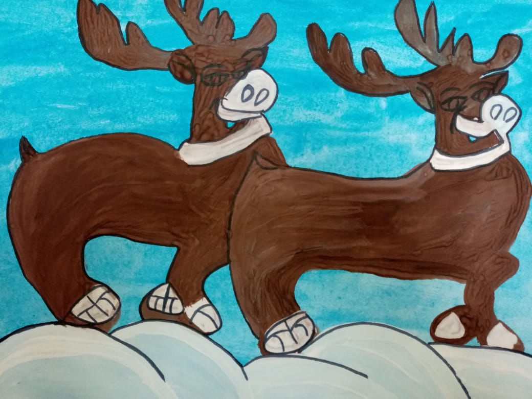 Шамрай Н. "Олени" рисунок гуашью.